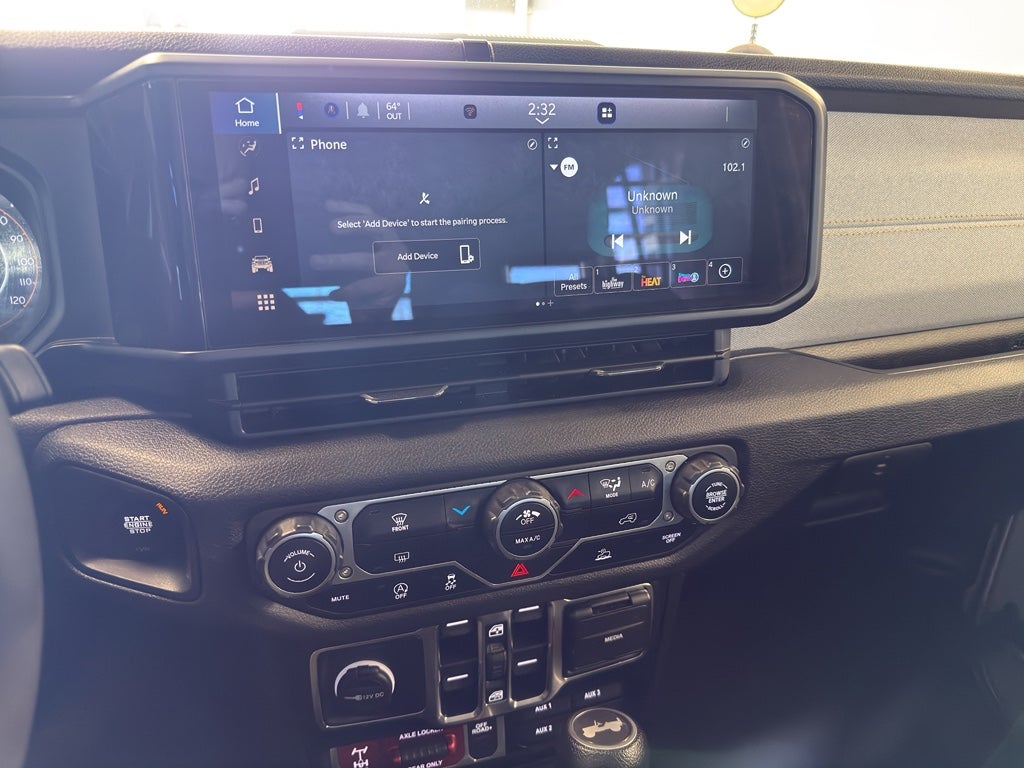 Quick Order Package 23W Willys: Speed-Sensitive Power Locks; 4- and 7-Pin Wiring Harness; Conventional Front Differential; Front License Plate Bracket; 4-Wheel Drive Swing Gate Decal; Gloss Black Sport Grille; MOPAR All-Weather Floor Mats; Black Injection-Moulded Rear Bumper; Dana M210 Wide HD Tube Front Axle; Power Windows with Front 1-Touch Down; Daytime Running Lights with LED Accents; LED Fog Lamps; LED Reflector Headlamps; E-Locker Rear Axle; Corning Gorilla Glass; Security Alarm; 4.10 Rear Axle Ratio; 2. 574 Kgs (5. 675 Lbs) GVWR; Willys; Class II Hitch Receiver; Moulded-In-colour Bumper with Gloss Black; Advanced Brake Assist; Willy's Suspension; LT285/70R17C BSW Mud Terrain Tires; Deep-Tint Sunscreen Windows; Off-Road Plus Mode; 17" X 7.5" Painted Black Wheels; 240 Amp Alternator; Willys Hood Decal; Forward Collision Warn/active Braking; Rock Protection Sill Rails; 156 KM/H Max Speed Tire Calibration; Power Heated Exterior Mirrors; Enhanced Adaptive Cruise Control; 4 Auxiliary Switches; Dana M220 Wide Rear Axle; Premium-Wrapped Steering Wheel; Rubicon Highline Flare; Sun Visors with Illuminated Vanity Mirrors; Remote Keyless Entry. **Equipment listed is based on original vehicle build and subject to change. Please confirm the accuracy of the included equipment by calling the dealer prior to purchase.**